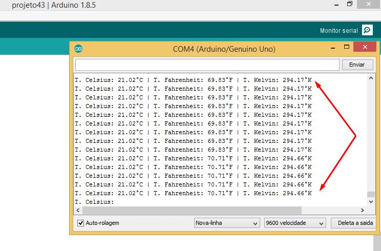 4.1.2. Veja abaixo como devem aparecer as temperaturas no monitor serial: