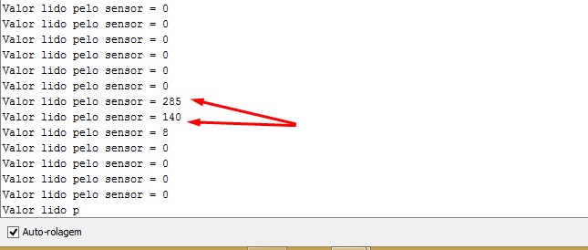 3.1. Observe no nosso exemplo que tivemos uma alteração na leitura do sensor de 140 até 285.