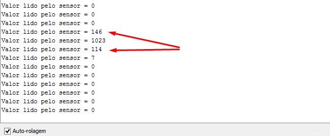 2. Faça primeiro a leitura sem tocar ou pressionar o sensor. Veja abaixo o nosso exemplo: