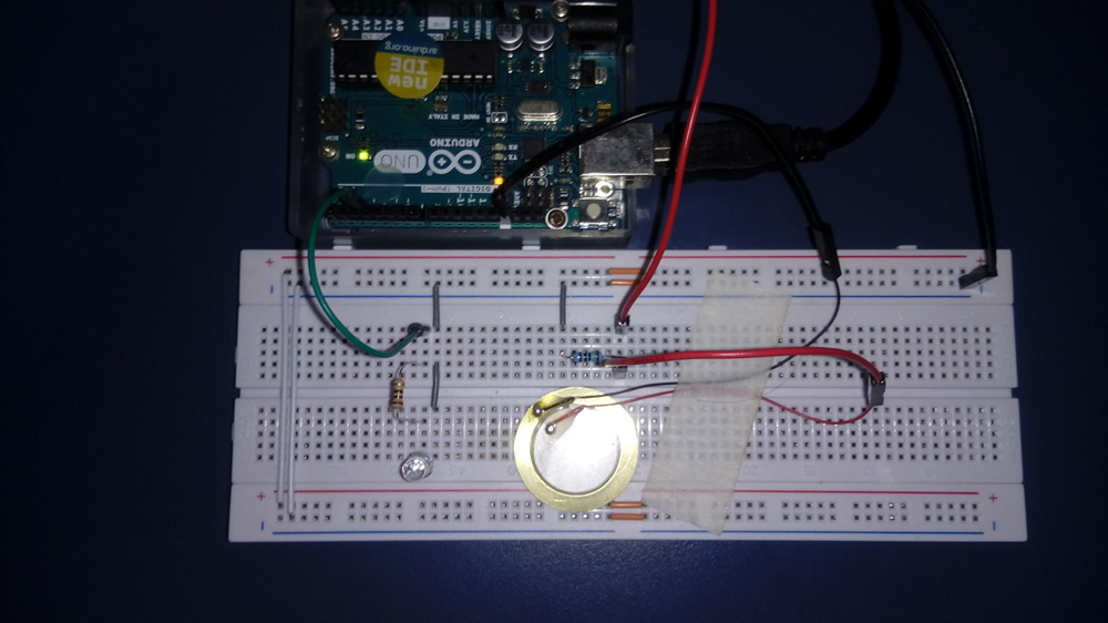 3.1. Veja a foto abaixo que mostra como montamos o nosso sensor piezoelétrico: